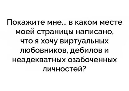 О себе:Злюка и вредина)))Без фото не отвечу,т.к.себя уважаю, в отличие от вас, трусов. Не худая я!! Женатые, альфонсы,азиаты,зэки,алкаши, обиженки и прочие "прЫнцы"-топайте мимо!Номер телефона первому встречному не даю, денег в долг тоже!Живу-Север Москвы.