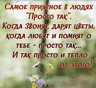 Я не ангел, крылья не имею,Я земная женщина с душой.И живу так просто, как умею!И Господь судья лишь надо мной!Для общения всегда открыта..Кто с добром, отвечу я теплом!•••7НравитсяНет
