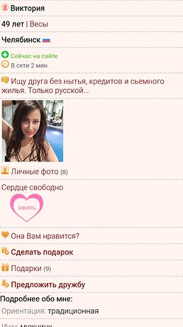 - Цель знакомства: дружба и общение, любовь и отношения, встречи, создание семьи, совместные путешествия